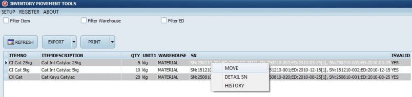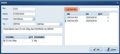 Special Tools Inventory Movement ini merupakan aplikasi pendukung sistem ACCURATE yang berfungsi untuk mengontrol posisi barang beserta nomor serinya di masing-masing gudang secara mudah yang terkonek dengan database ACCURATE Anda disertai fitur penginputan pindah barang antar gudang secara mudah dan otomatis tersimpan di dalam sistem ACCURATE yang terhubung.
